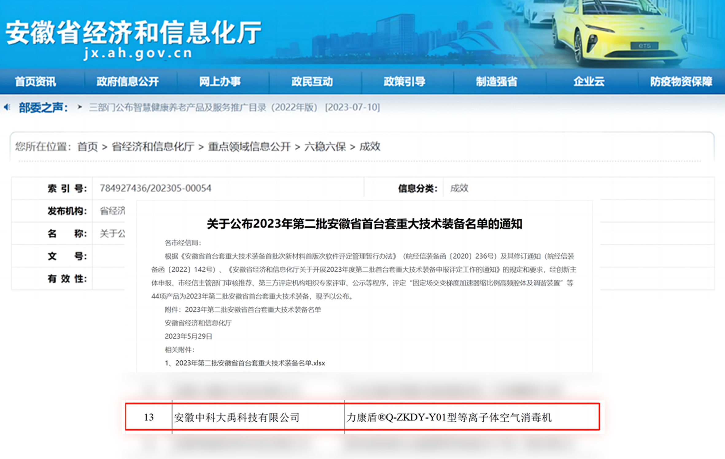 力康盾?ZKDY-G-180-P型等離子體空氣消毒機(jī)入選2024年度第三批安徽省首臺套重大技術(shù)裝備,評定等級:國內(nèi)先進(jìn)